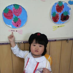 昼前には帰り支度して~帰る前に、授業で作った「イチゴ」を嬉しそうに見せてくれた(^^)