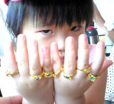 ←両手におもちゃの指輪をはめて喜んでいる所を邪魔されて、不機嫌なジュニアw