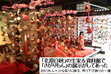 今「柳川」では、ひな祭りのイベントで「吊るし雛」の一種で「さがりもの」と呼ばれる天井から吊り下げる形の、赤を基調としたきらびやかな飾りが展示してあった!(しかも多量で派手である!)