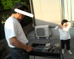 平日でジュニアが幼稚園から帰って~歯医者に行って(歯の詰め物が取れたのだった)~父上から電話があり!どこかお出かけしたらしいのだが、海鮮物が安く手に入ったので、家で「バーベキュウ」しようという話になった!