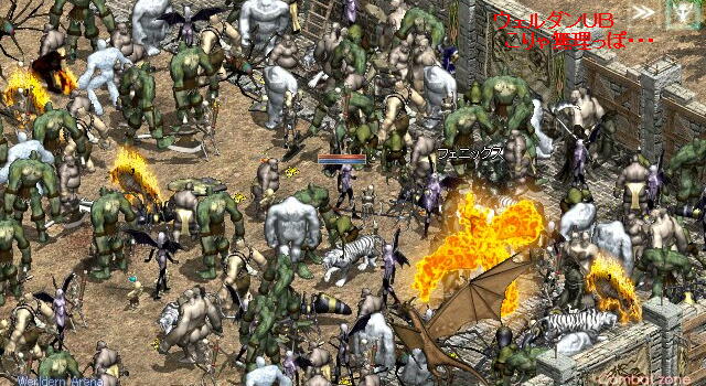 その後も倒されないままのモンスは増え続け、落ちたアデナやスクはスライムのご飯に~。ボスはフェニ1とドレイク2だった。しかしこれだけモンスが出ては、Lv制限なくてもしんどいだろうな~。
