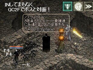 いざ、ボスに突撃~!としたかったが私しか居らず、「!」でヘルプだしまくる!でも誰も来ず・・・と思ったら、2FにDKさんと白弓さんの2人がやって来て(出たのは階段のすぐそばだった)3人でGO!しかし、私は接近戦では柔らかすぎた!ボスの攻撃は痛すぎて無念の帰還(TωT)まあSS撮れたし、死ななかっただけOKかな~。