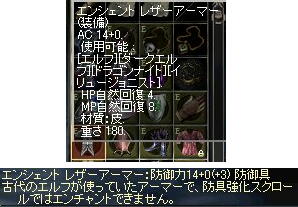 貯金がほぼ無くなってしまうけど、アデナもそんなに使う事も無いだろうと思いながら・・・奮発して超高級品の「エンシェントレザーアーマー」なるものを買っちゃった(^^;)