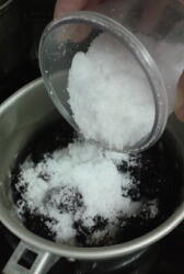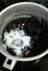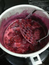 左から順に、砂糖をベリーの半分少ないぐらい入れて~熱をくわえながら潰していく!