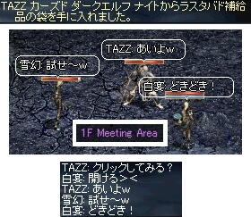 劣る寸前に雪幻さんがINしたけど、休みのTAZZさんは寝ずにピラミッドに篭っていたのでグロッキ~で落ち。私も11時なので落ちちゃった。