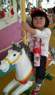 お金を掛けたくなかった私だが、メリーゴーランド1回だが乗せてあげたよ♪