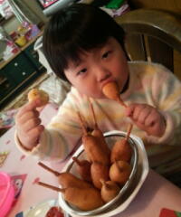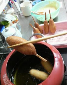 作り方は、割った割り箸に、ウインナーを突き刺して・・・180度の油で程よく揚げるだけ!