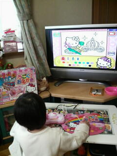 ジュニアは少し値が張るけど、テレビの画面に「お絵かき」が出来る、お絵かきセット?を+お年玉2000円たして・・・買っていただいた(^^)