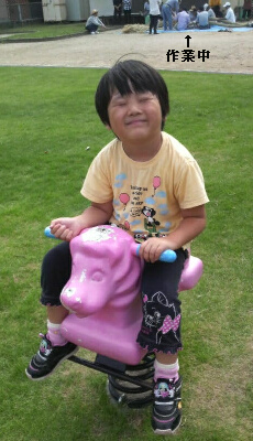 その作業中の公園で、ジュニアは元気よく遊ぶwww