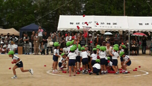 初めの方にあった、園児全員参加のクラス別「玉入れ」は、ジュニアは頑張って玉投げて入れていた(^^)