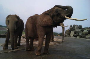 サイもゾウさんもほぼ道路横!