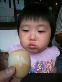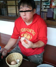 旦那は美味しそうに、「温泉卵」3個を頬張り~