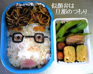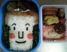 まともなキャラ弁に!と頑張って、旦那の顔を作ってみたのよw