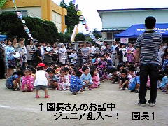 園長先生が、ありがたいお話をしている時に!園児の前にジュニア乱入~!
