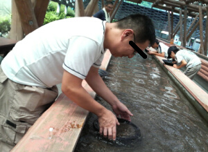 でも昼過ぎたけど、無事に到着してから!早速「砂金採り」コーナーに行って、一人600円の30分間の間で砂金採り開始~♪