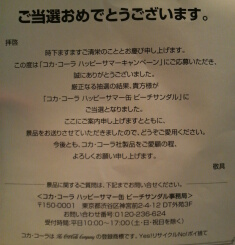 まず・・・ケータイゲームの「モバゲー」の「海賊トレジャー」っていうのがあるのだが、イベントで「コカコーラ」のキャンペーン応募したら、もれなくゲームで使えるプレゼントがあったのね。