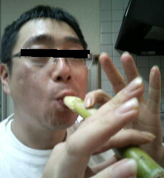 その瞬間、私は第一陣を素手で受け止め、急いで流しのタオルを持ってジュニアの元へ戻った途端!第二陣発射を受け止める・・・が、第3陣は受け止める事が出来ずに、ジュウタンへゲロゲロ~(TωT)