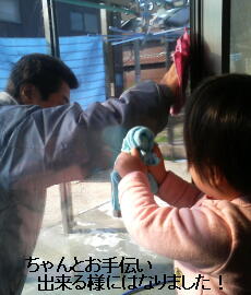 この日は父上が窓の掃除をしていたら、ジュニアも一緒にお掃除~♪