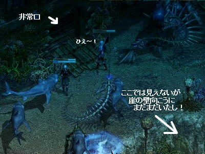 が!ここのモンスは調整が入って・・・サソリが仲間意識を持っちゃったもんだから、単騎では・・・多量にたかられて死ねます!それでなくてもカニでゼイゼイ言ってる私なのに、サソリまでたかられたら、もう地底湖では狩りが出来ません・・・狩場を変えないといけなくなってしまったよ!気に入ってたのに~(>д<)