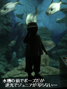 水槽の前で写真撮ったが、逆光になるのでジュニア本人が黒くなってしまったわ(><)