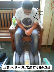 父上・旦那とジュニアは、まだお風呂から出てきてないようだったので、休憩ついででお風呂の入り口にある「100円入れたら起動する、足裏マッサージ機」をしながら待つ事に♪