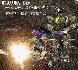 ボチボチモンスを倒しつつ、奥地に行くにつれて・・・なんだかモンスが貯まってるのか?一度にモンス達がたまにドバーッと来るんですが!