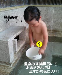 私一人でジュニアを連れてお風呂に入ると、ジュニアから目を離せないので、事実上無理なのである!(家ぐらいに狭いならいいが)しかも露天風呂だし、外湯の種類が多い所である!目が行き届かずに、何かあったら大変である(><)