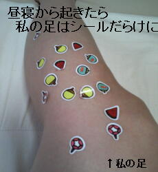 足にシールがいっぱい貼られていた!