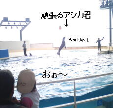 入場したら、丁度「イルカショー」が始まる時間で、早速会場へ!