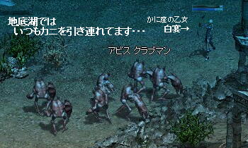 相変わらず私は「アビス クラブマン」に人気があり(引きながら狩してるので、カニが寄ってくるのはしょうがないが)カニで経験地とアデナを稼がせてもらってるようなものだわね(・ω・)