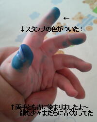 気づくのが遅かった・・・両手でいじったらしく、指先は青で染まっている(´д`)