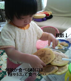 早速ジュニアに、出来立てのホットケーキアンパンマンを与えてみたら・・・。