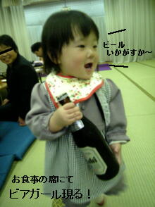 ビールのビンを持ったまま動き回るその姿は・・・まさしく「ビアガール」であった!(栓は抜いてなかったけどね)