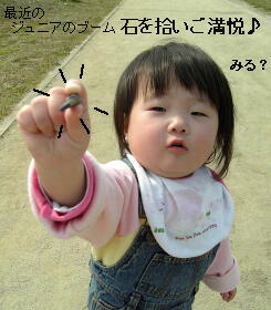 ココの所のジュニアのマイブームは「石を拾い、投げ捨てては拾う!そして両手に持って打ち鳴らす!」