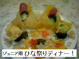 しかし「ひな祭り」の日で、何もしないのもいけないと思って、夕飯にはちょっと頑張ってジュニア用にご飯作ってみた♪