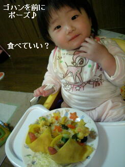 その他の具材は、わざわざ私に食べさせて(すくっては私に食えと進めてくる)チャーハンは・・・おそらく3割がたはスプーンからこぼれて床の上へ落下~(TωT)