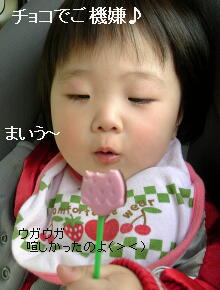 レジを済ますまでは、チョコを開封せずにそのまま楽しそうに持っているのでいいのだが、車に乗って帰ろうとするとウガウガウガウガ!仕方がないのでチョコ開封(TωT)