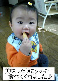 昨日作ったアン●ンマンクッキーが結構あったので、今日は久しぶりに・・・旦那のイトコの子供で、ジュニアと半年違う「桜子」ちゃんに手土産持って会いに行ってみた!