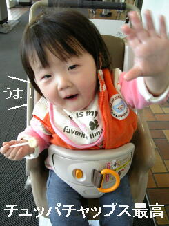 でも1件目の店では、製作用のチョコを扱っておらず・・・店内をくまなく探索しているうちにジュニアもグズリだす!こんな時にはお菓子だ!と考え「チュッパチャップス ストロベリー味 3本100円」を急いで購入!仕方なしにジュニアへ与えてみる!