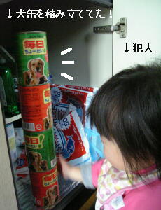最近、台所の下に置いてある、ココタン用「犬缶」が積み重ねられていた。