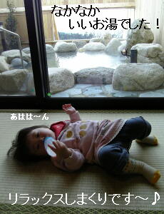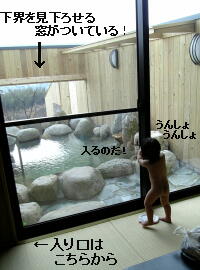 温泉に無事到着してからは、駆け回るジュニアを追いかけつつ・・・父上の提案で家族風呂へ~。足腰がおぼつかないお婆ちゃんは、誰かが一緒にいないと行けなかったので(介護人が必要)ジュニアもいるが、私が一緒に入らないと行けなかったのだ。もちろん父上は普通の温泉風呂へGO。