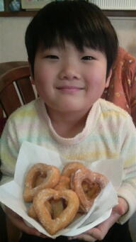 でもちゃんと可愛い「ハート型」のドーナツが完成して、ジュニアも喜んでくれた(^д^)