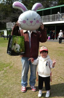 ← 旦那の顔がウサギ風船で隠れたら、ウサギ人間みたいになった。
