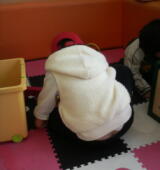 その帰りに、旦那が携帯電話見に行きたいと言うので、行きつけの携帯やさんへ行って・・・旦那が携帯を見ている間、ジュニアは部屋の片隅にある「お子様広場」?で、遊んでたのだが・・・。