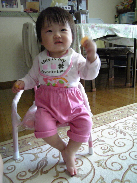 今日のジュニアは、エビセン食べながらだが、こないだ購入した椅子に座ってくれてオヤツの図