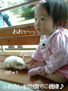 ふれ合いコーナーではお兄さんがジュニアのもとにモルモットを持ってきてくれた!以前よりジュニアはちゃんとナデナデできました♪(前回ははたくような形だった・・・)
