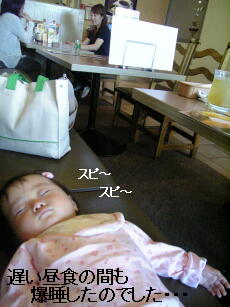 帰りついでのファミリーレストランでもジュニアは暴睡!まあ、私が食べている間に起きちゃったけど、よく寝られたようだった。